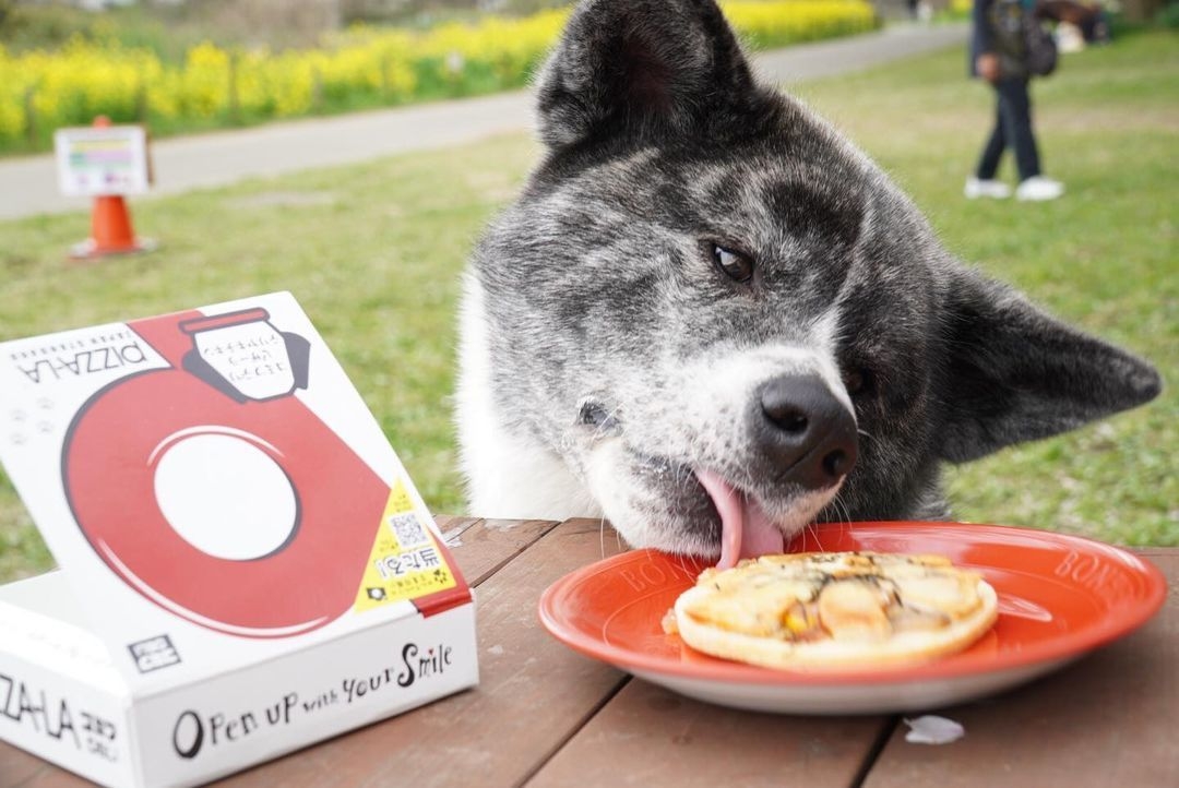 家族の一員でもある大事な愛犬と「一緒に食事を楽しみたい」という飼い主向けに、PIZZA-LAの定番ピザであるテリヤキチキンを、愛犬用にアレンジして発売。人間用と同様に「テリヤキチキン・コーン・マッシュルーム・きざみのり」などの食材を使用しながら、愛犬が好む味に仕上げました。