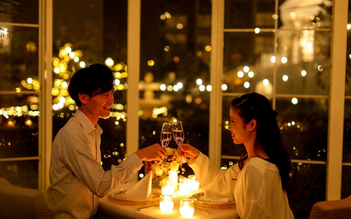 クリスマス限定のスペシャルフルコースをお召し上がりいただいた後は、キャンドルが輝くチャペルでロマンチックにプロポーズを。