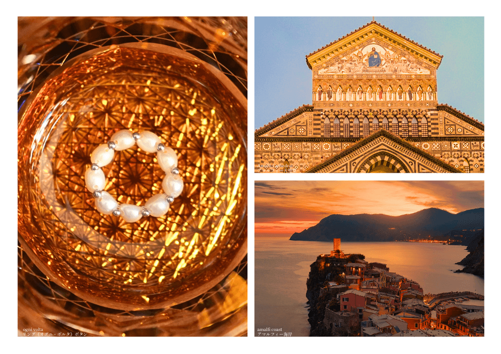 イタリア アマルフィ海岸 アトラーニを舞台に描かれるラシレーナの世界。ブランドブックでは、最新の淡水パールジュエリーコレクションが多数お披露目されます。
