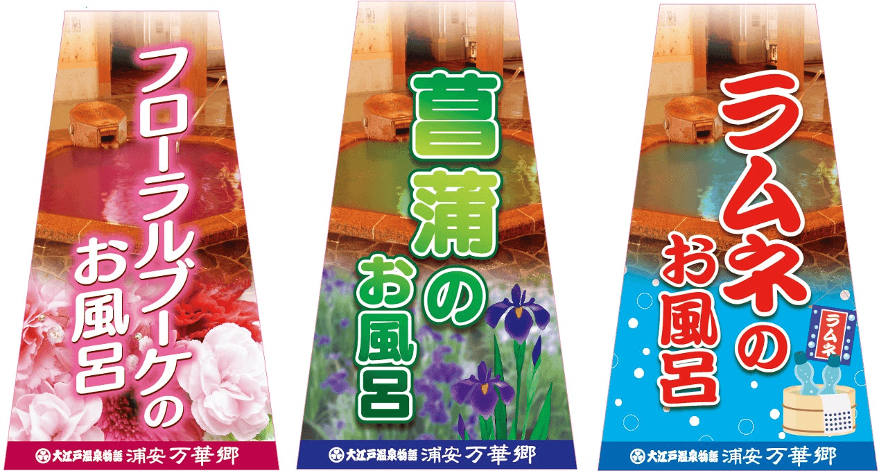 香りの良いお風呂や、日本の季節行事を感じさせるお風呂など、男女別内湯の「四季の湯」では、季節毎にかわり湯をお楽しみいただけます。