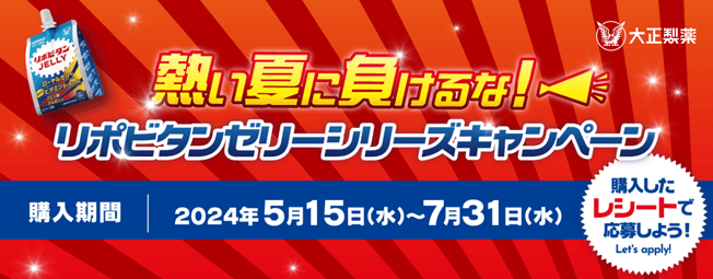 大正製薬株式会社[本社:東京都豊島区 社長:上原 茂](以下、当社)は、リポビタンゼリーシリーズを購入して素敵な賞品が当たる「熱い夏に負けるな!リポビタンゼリーシリーズキャンペーン」を、2024年5月15日(水)から7月31日(水)までの期間で実施します。