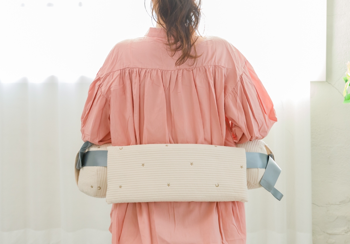 クッションがズレにくいサポートベルト付き。動いてもズレにくく、授乳に集中できます。