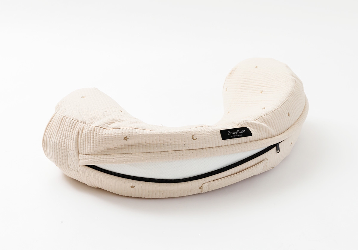 BabyKuruの授乳クッションは、崩れがちな授乳姿勢をサポートし、理想的な姿勢へと自然に導いてくれる優れもの。赤ちゃんを理想的な高さで支えられる程よい厚みと、長時間使用しても型崩れしない耐久性が特徴で、授乳時のママの肩や腰への負担を大きく軽減できます。また、ベルト付きでしっかり固定できるから、変化する産後のママの体にもしっかりフィット。授乳の途中でクッションがずれる心配もなく左右の授乳もスムーズに行えるのも嬉しいポイントです。