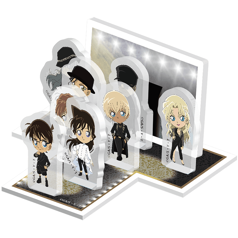 江戸川コナン/灰原哀/安室透/ベルモットの全4キャラに加え、デフォルメは毛利蘭/赤井秀一/ジン/ウォッカの計8キャラで展開。