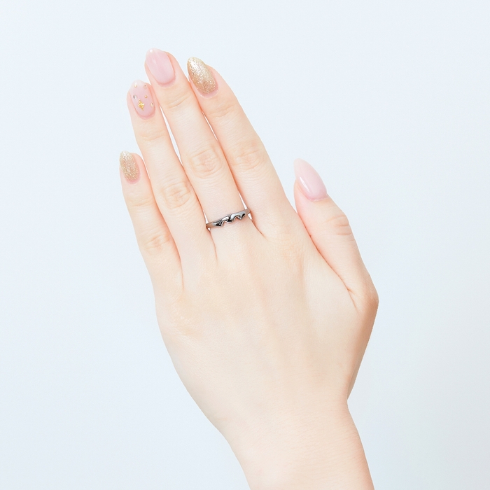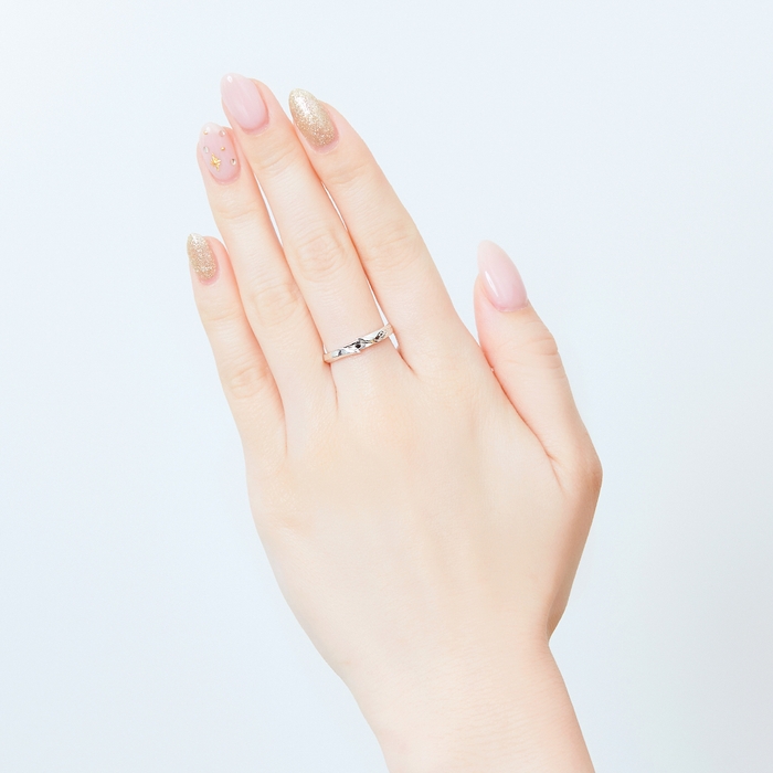 コスチュームの裾の形を取り込んだウェーブタイプのリング。