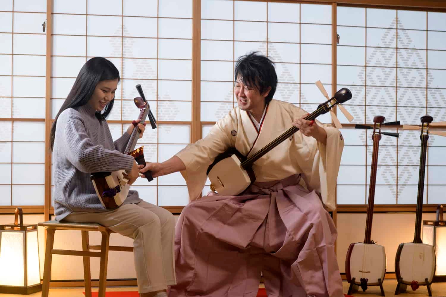 7南津軽・大鰐に位置する青森県の温泉旅館「界 津軽」では、2023年3月1日~2024年2月28日の期間、「津軽三味線の達人技に触れる体験」を開催します。広さ100平米の自然の木々に囲まれた津軽の特別室を貸し切り、津軽三味線奏者・渋谷幸平氏から、津軽三味線の歴史や他の三味線との違い、「弾く技」について教わります。実際に津軽三味線を借りて、津軽を代表する「津軽じょんから節」を奏で、津軽三味線の重厚感や音色を深く感じることができる体験です。本取り組みは2021年より界全施設で実施している、職人・生産者と行うご当地文化体験「手業のひととき」の一環で、今年3年目を迎えます。