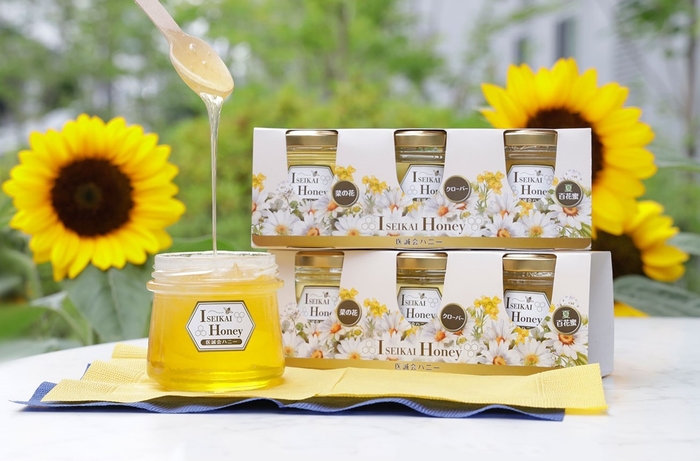 大阪北部、北摂山系を望む恵まれた自然環境で、ミツバチたちが集めたたくさんの花蜜から出来た蜂蜜です。医誠会ハニーの糖度は高品質とされる蜂蜜糖度80度をクリア。蜂蜜自給率7%の日本において、国産・非加熱・無添加の純正生蜂蜜の医誠会ハニーは、とても希少なものとなります。製品化はホロニクスグループ栄養管理部の協力のもとHACCP環境下で時間をかけたろ過・瓶詰めを行い皆さまへお届けしています。