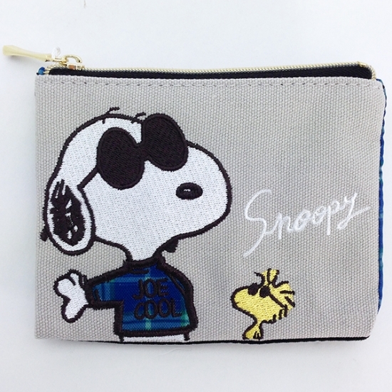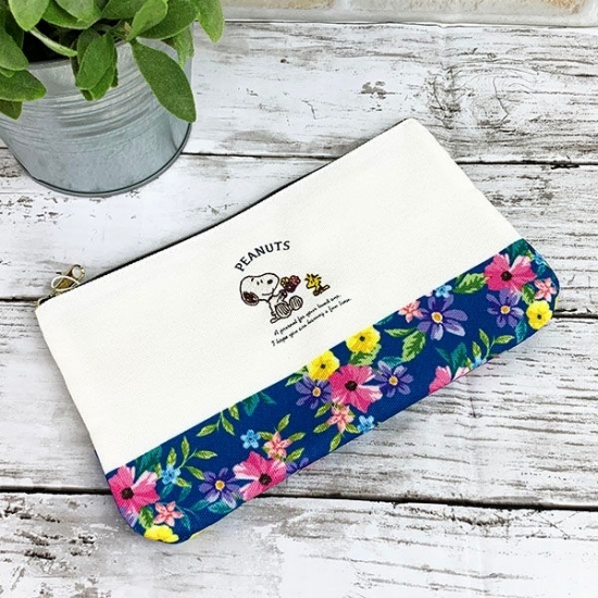 こちらがその、マスクケースです。一見普通のポーチのようですが、マスクに合わせて横幅の広いフラットなフォルムなんです。中央のスヌーピーもかわいくて、下面の花柄もキュートですよね♪