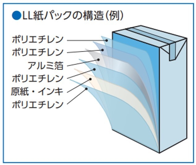 ●紙やアルミ箔など6層構造の容器が酸素や光を遮断し、色や風味を損なうことなく、食品の品質を保ちます。
