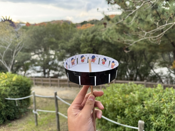 本イベントでは、親子で一緒に回転のぞき絵(ゾートロープ)作りを楽しむことができます。回転のぞき絵とは、複数の静止画をくるくる回し1つの覗き穴から見ることで、まるでアニメーションのように絵が動いて見える不思議なおもちゃです。「クレヨンしんちゃんアドベンチャーパーク」ならではのデザインを組み合わせて作るゾートロープ。どんな風に絵が動き出すのか、ワクワクしながら夢中になって楽しめる冬のクラフト体験に、家族みんなで挑戦しよう!