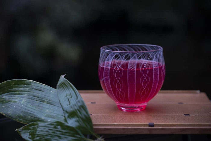 蛍を鑑賞したあとは施設内の「水の庭」で、総料理長特製の赤紫蘇しぼりを味わいます。赤紫蘇は、平安時代から日本で栽培され、薬用や香味用食品として重宝されました*5。爽やかな香りと酸味のあるすっきりとした味わいで、蛍鑑賞後に涼を感じ、ひと息つくことができます。