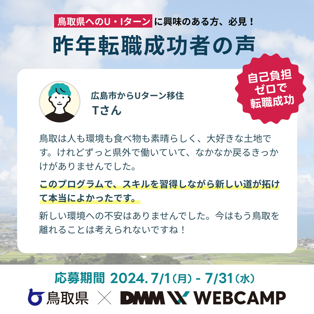 【DMM WEB CAMP×鳥取県】とっとりデジタル人材育成プログラムの受講者募集を開始しています