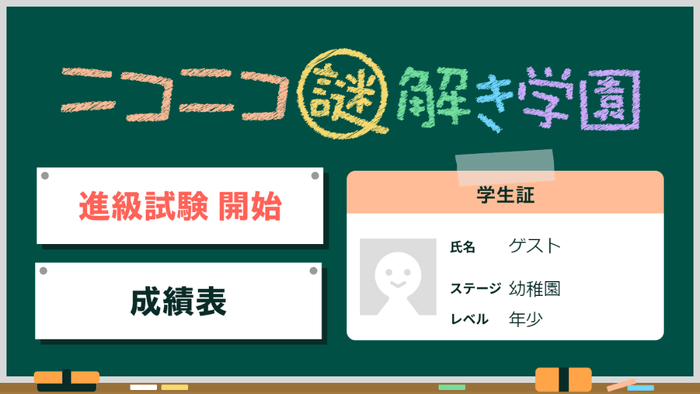 そんなニコ生ゲームの新コンテンツ『ニコニコ謎解き学園』は、配信者が配信上でゲームを起動し、次々と出てくる進級試験問題の謎を制限時間内に解く事で、幼稚園、小学校、中学校、高校、大学と進級をしていき、卒業を目指すというシンプルなゲーム。進級していくにつれてどんどん難しくなっていく謎を配信者と一緒に解いたり、謎に悩んだ配信者に視聴者がコメントでヒントを教えたり、その遊び方はさまざまです。