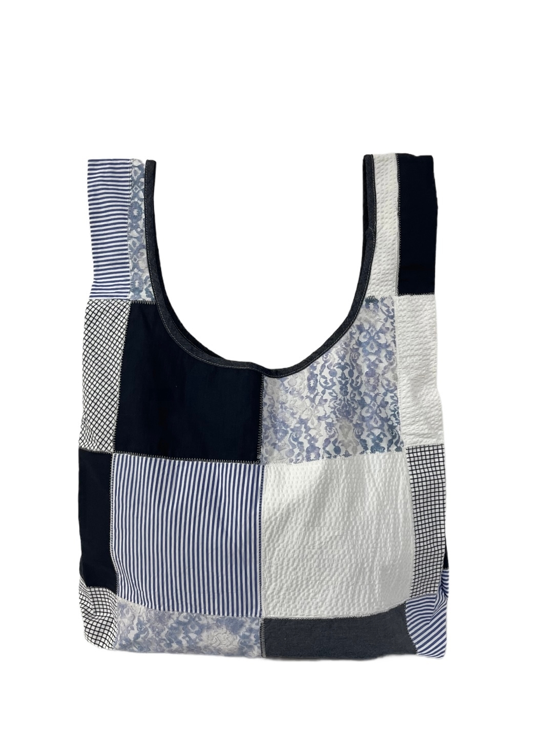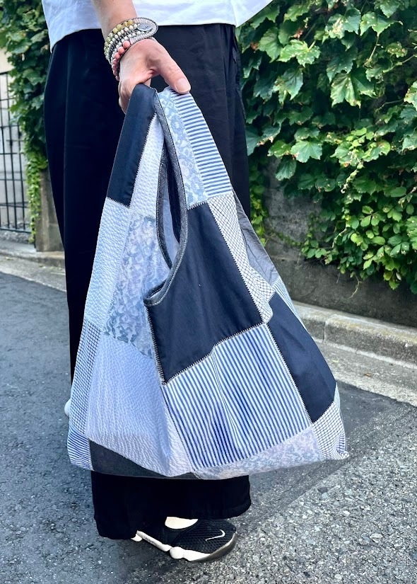 代表の磯部はこの無駄をどうにかできないものかと考え、当社が得意としているTPSミシンを使い、端切れ生地をかき集めてTPSではぎ合せ、一枚の生地に再生する取り組みを開始いたしました。環境に配慮した取り組みを通じて、当社にできることをコツコツとおこない皆様にお届けしたいと思っております。