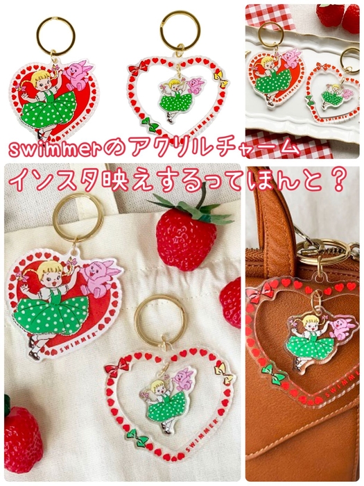 どうやらSWIMMERのアクリルチャームはインスタ映えするらしい…。もちろんバッグにつけたら、ウルトラカワイイんだけどね♪