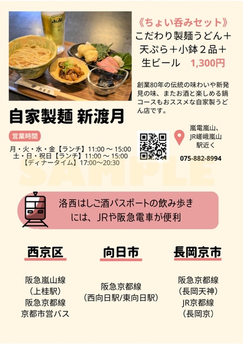 洛西はしご酒パスポートは、洛西地区の参加29店舗の店頭でご購入頂けます。