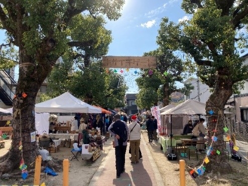 昨年7月より大阪府民の森への玄関口・起終点である京阪電車交野線 私市駅前広場を拠点に、官民・地域と連携し、「改札出たら、里山直結・地域体験ツーリズム!」をコンセプトに、地域体験型観光コンテンツの開発をすすめています。同時に将来的な駅前広場の在り方を見据え、従来の賑わいづくりではなく、“交わり”を目的とした次世代の駅前広場の社会実験として「キサイチゲート」がスタートしました。