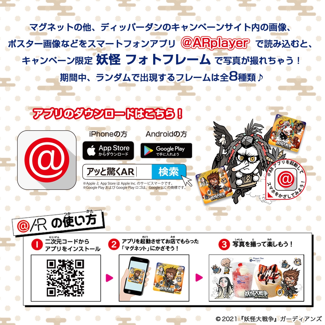 マグネットやキャンペーンポスターをスマホアプリ『@AR Player」で読み取るとかわいい妖怪キャラと一緒に写真が撮れちゃうARフォトフレームもお楽しみ頂けます。