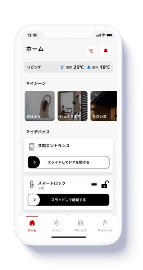 ・「おはよう」「行ってきます」といった「シーン」機能や、時間や位置情報などを実行条件とする「自動モード」の活用で、複数のIoT機器をまとめて動かし、設定どおりの住空間の制御が可能