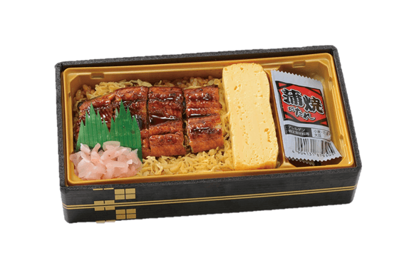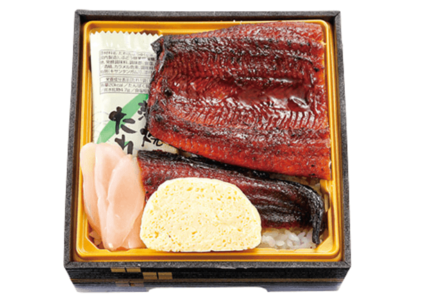 店内で焼き上げただし巻き玉子とうなぎを盛り付けたちょっと欲張りなお弁当。