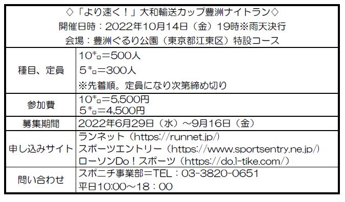 10月14日号砲「より速く!大和輸送カップ豊洲ナイトラン」参加者募集中