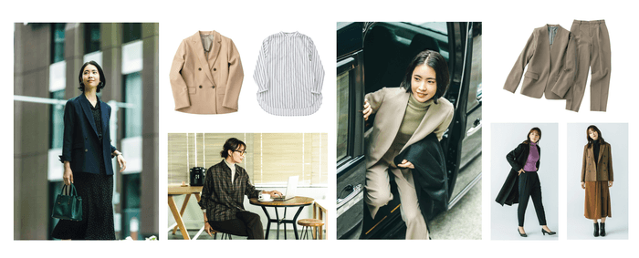 ライフスタイルの変化とともに、ビジネスシーンにおいてもよりカジュアルな装いが見られるようになりました。当社レディススタイルの中心ブランド「ANCHORWOMAN(アンカーウーマン)」では今秋、ビジネスシーンでも自分らしく着用できる幅広い仕事服の提供を目指し、リブランドを行いました。このような中、20代~30代、特に子育て世代の女性からの支持が高く、クリエイティブディレクターとして活躍しながら、2児の母でもある高園あずささんを迎え、今までの「洋服の青山」では展開のない新たな仕事服を提案します。