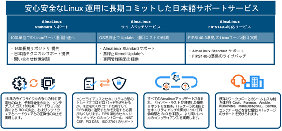 また、サイバートラストはAlmaLinux OSを運営する The AlmaLinux OS Foundationにプラチナスポンサーとして参画し、AlmaLinux OSの開発コミュニティへも積極的に参加しており、国内企業のニーズへの迅速な対応を目指します。