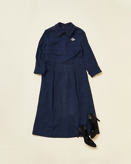 華やかなジャカード素材のワンピースやジャケット、スカートをキーアイテムに、オリジナルの小花柄のプリントアイテムやジャケットライクなカーディガンなど 学校行事や特別なシーンで着用できるのはもちろん、通勤スタイルにも対応できるアイテムをラインナップいたします。