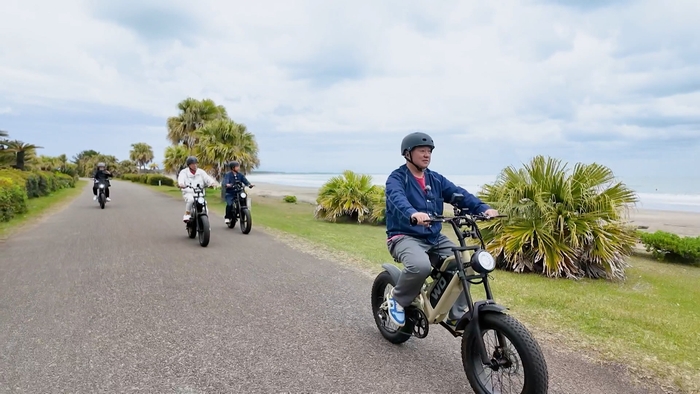 E-BIKEのパワーを頼りに広い砂浜を自由に走る開放感を満喫する!