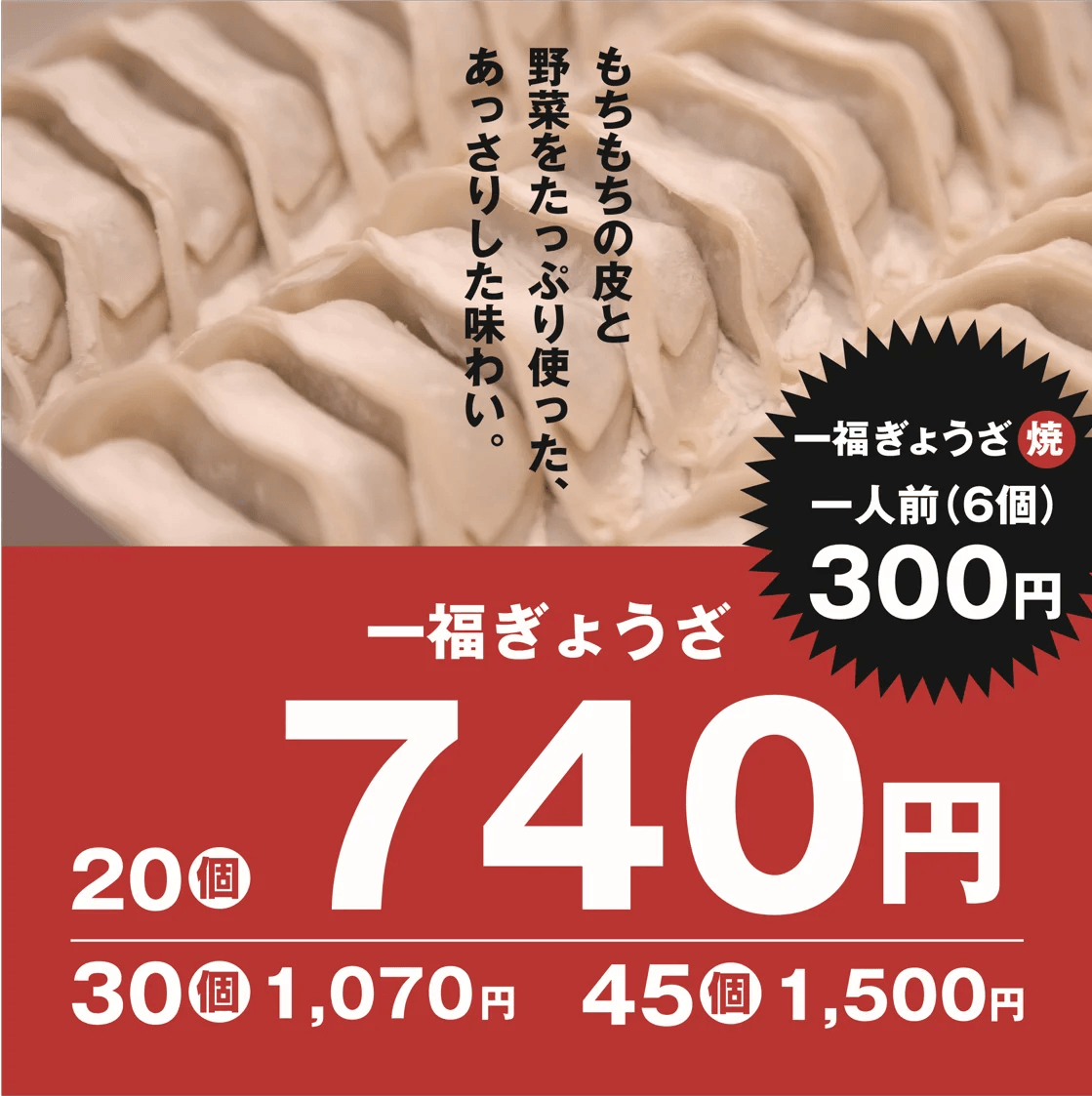 一福ぎょうざ20個入り(生・冷凍) 特別価格500円(通常価格740円・いずれも税込)