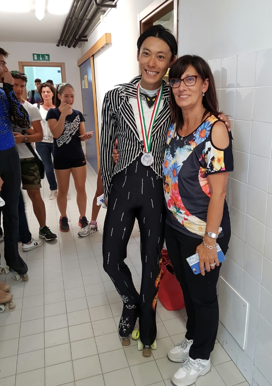 アーティスティックローラースケートを続けたい、上手くなりたいという気持ちが強かった私は、その先生がイタリア国内の色々な場所をまわってレッスンをしていることを聞きつけて、ストーカーのようについてまわってレッスンに参加していたんです。そうして2ヶ月がたった頃、上達が見られたことと、しつこく粘る姿勢に根性があるなと認めてくれたみたいで、「わかった、次から私が見る。」とコーチになってくれる快諾を得ることが出来ました。