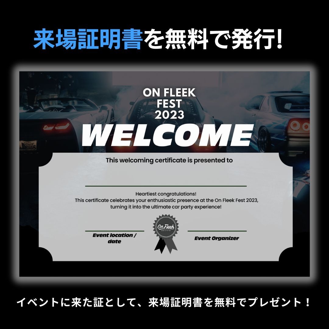 イベントへお越しくださったゲストには来場証明書を無料でお渡しします。来場証明書には、ゲストのお名前が記名されるので唯一無二の思い出の品となること間違いありません。