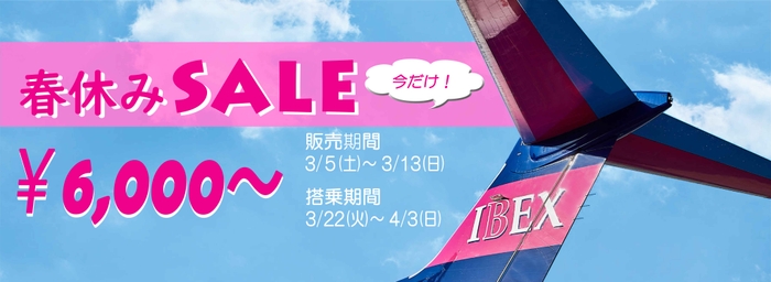 アイベックスエアラインズは、3月5日(土)よりTIMESALE「春休みSALE」を実施します。