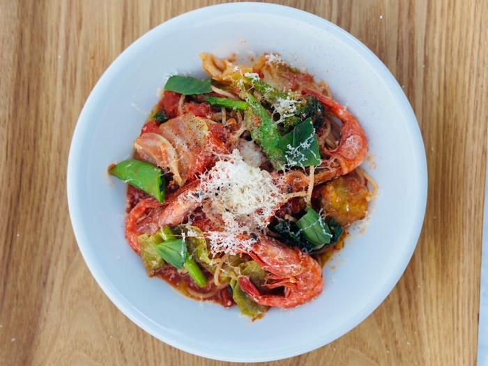 ■甘海老と春野菜のトマトチーズパスタ 価格:1,400円(税込1,540円)