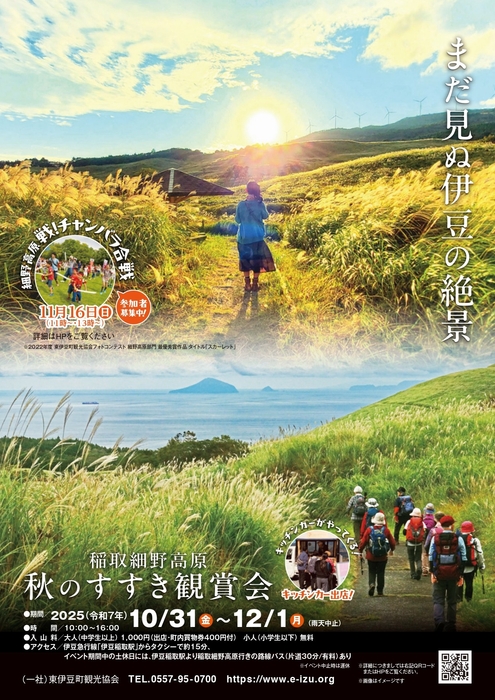 一般社団法人東伊豆町観光協会(所在地:静岡県賀茂郡東伊豆町、会長:加藤昌利)は、伊豆半島随一のパノラマスポットである稲取細野高原にて、「秋のすすき観賞会 2025」を以下の通り開催いたします。