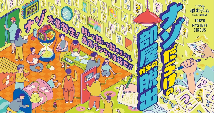 世界中で1,090万人以上を動員しているリアル脱出ゲームを企画運営する株式会社SCRAP(本社:東京都渋谷区、代表:加藤隆生)は、TOKYO MYSTERY CIRCUS(以下、東京ミステリーサーカス)にて、リアル脱出ゲーム『ナゾだらけの部屋からの脱出』を4月3日(水)~5月6日(月祝)に開催いたします。