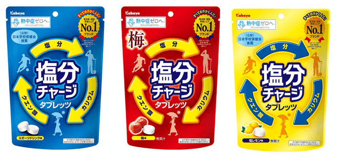 お菓子でありながらも暑さ対策につながるという新しいポジションを目指して開発し、2009年に発売した“手軽においしく塩分補給”をコンセプトにしている『塩分チャージタブレッツ』は、酷暑でも溶けずに持ち運びやすく、素早くすぐに塩分摂取が可能なことから、“真夏の外出やスポーツ、外仕事の相棒”として長らく消費者に親しまれています。