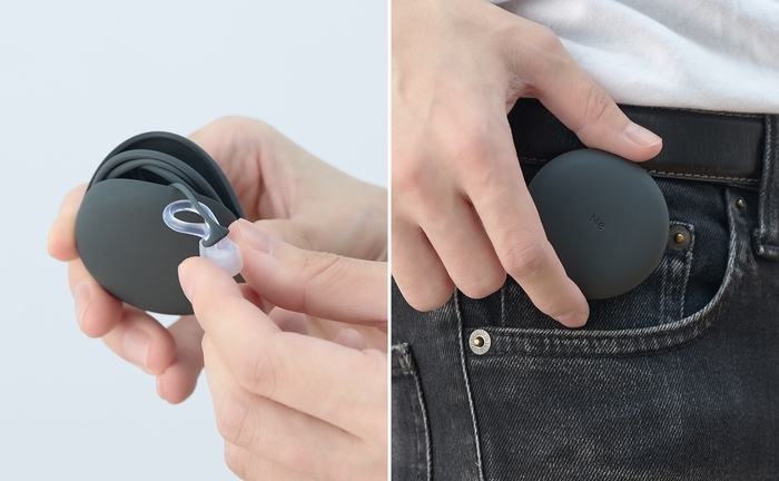 ポケットやカバンにすっきり収まり、イヤープラグとコネクターコードをスマートに持ち運べます。側面を軽く押しこむだけで簡単に開閉できる、ミニマルで使いやすい設計です。