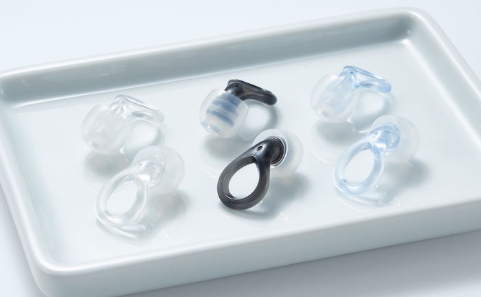 クリア、ブラック、ブルーの3色をラインアップ。有機的なフォルムと透明感のあるデザインが、上品なアクセサリーのように耳元をさりげなく引き立てます。
