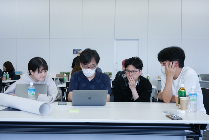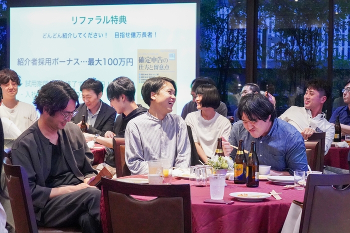 全社員が部署問わずグループに分かれ、チーム一丸となって短時間でプロダクトの社会実装案を考え、提案書に落とし込みます。その後、役員をクライアントに見立て、新機能を提案しました。
