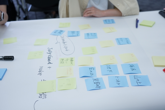 ▼模造紙や付箋を使い、ディスカッションしながら、各々アイディアをまとめます。