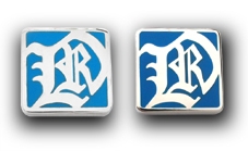 社章のデザインモチーフは社名の頭文字「R・O・L」。これをカリグラフィーのように装飾的にデザインし、通信商社のイメージにふさわしい「@(あっとマーク)」に見立てています。製作は社長用のシルバー、役員用のゴールド、マネージャー用のアンティークゴールド、サブマネージャー用にアンティークシルバーのメッキ仕上げ4種、また一般社員用には青または紺×シルバーの仕様というラインアップ。社内はもとより、社外からの評判も上々でした。