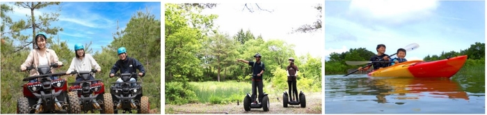 スキージャム勝山では福井県内で唯一、広大な自然地形を利用した「四輪オフロードバギーツアー」と、森の中を散策する「セグウェイツアー」のアクティビティを楽しむことができます。また、5 月 3 日から 3 日間限定で開催する「カヤック体験」は、水面に浮かびながら法恩寺山の雄大な景色を望む事ができ、運が良ければ、時折水面に顔を出すアカハライモリなど水生生物に出会えるかもしれません。白山連峰に囲まれた大自然の中で、様々なアウトドア・アクティビティをお楽しみいただけます。