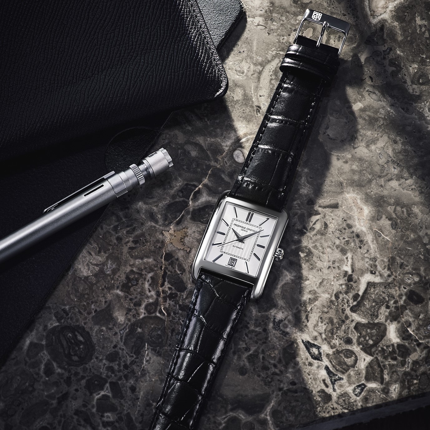 人気のコレクション「クラシック カレ オートマチック」の今季新作は、ハートビートを封印して登場。カレ(四角)をベースにしたアールデコのデザインが際立ちます。バーインデックスとドルフィン針に、控えめながらも実用的なデイト表示を設けたミニマリストスタイルの時計です。