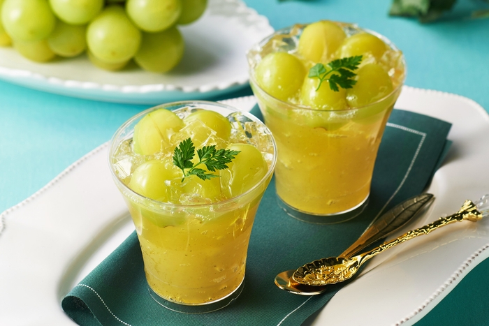 また、新作『シャインマスカット宇治茶ジュレ』を、宇治本店限定で販売いたします。宇治煎茶「長寿」を使用したジュレの上に、国産のシャインマスカットをふんだんにあしらいました。1日の数量限定で販売いたします。