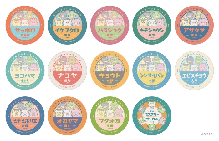 「ご当地缶バッジ」は、全国各地のリアル脱出ゲーム常設店の店名と「SCRAPPIES」がレトロ調にデザインされた、各店舗ごとに異なる全14種の特別なデザインの缶バッジ。訪れた店舗のイベントに参加した際、記念として購入するのもおすすめです。