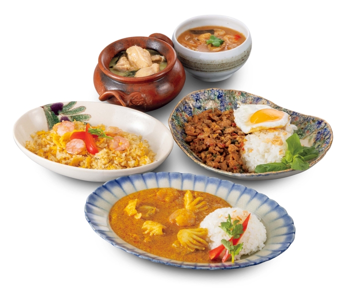 ナシゴレン220g、サテアヤム5本、グレアヤム200g、アヤムマサラ250g、皮付きマンゴーシャーベット45g、サンバルトマト・サンバル マタ各30g