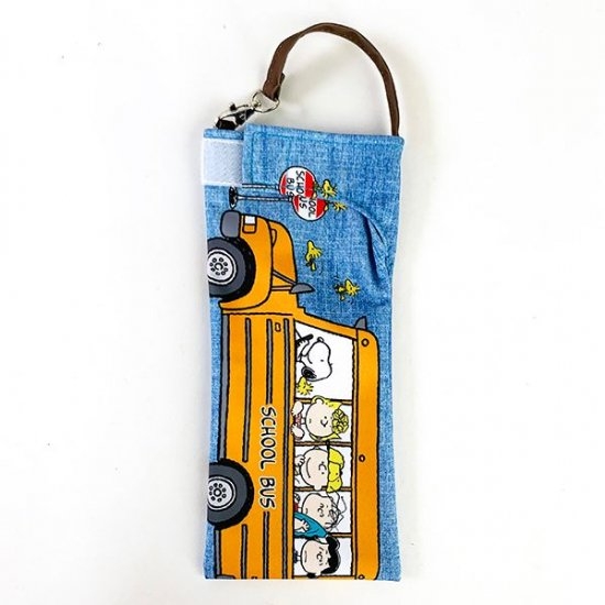 スヌーピーでおなじみの、イエローのスクールバスがくるポンになって登場です。デニム風にも見える背景のカラーとの配色も、オシャレですよね~