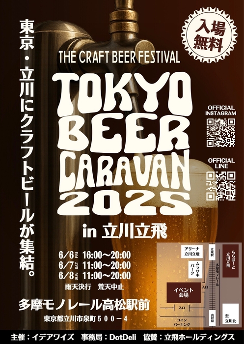 DotDeli株式会社は、2025年6月6日(金)~6月8日(日)に、多摩モノレール高松駅前にて【TOKYO BEER CARAVAN 2025in立川立飛】が初開催いたします。