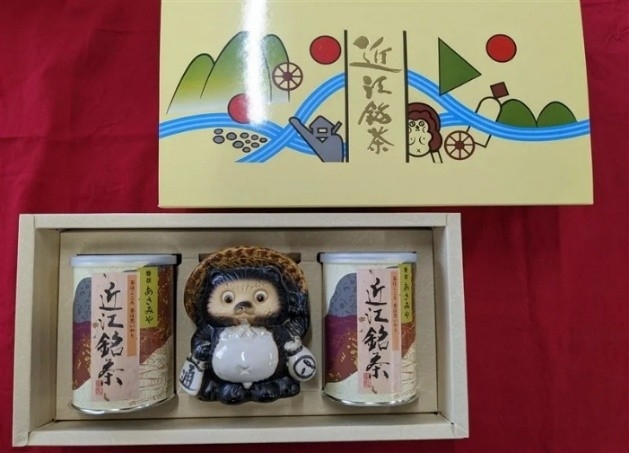 〇【JAこうか】朝宮近江銘茶・信楽焼狸(貯金箱)セット